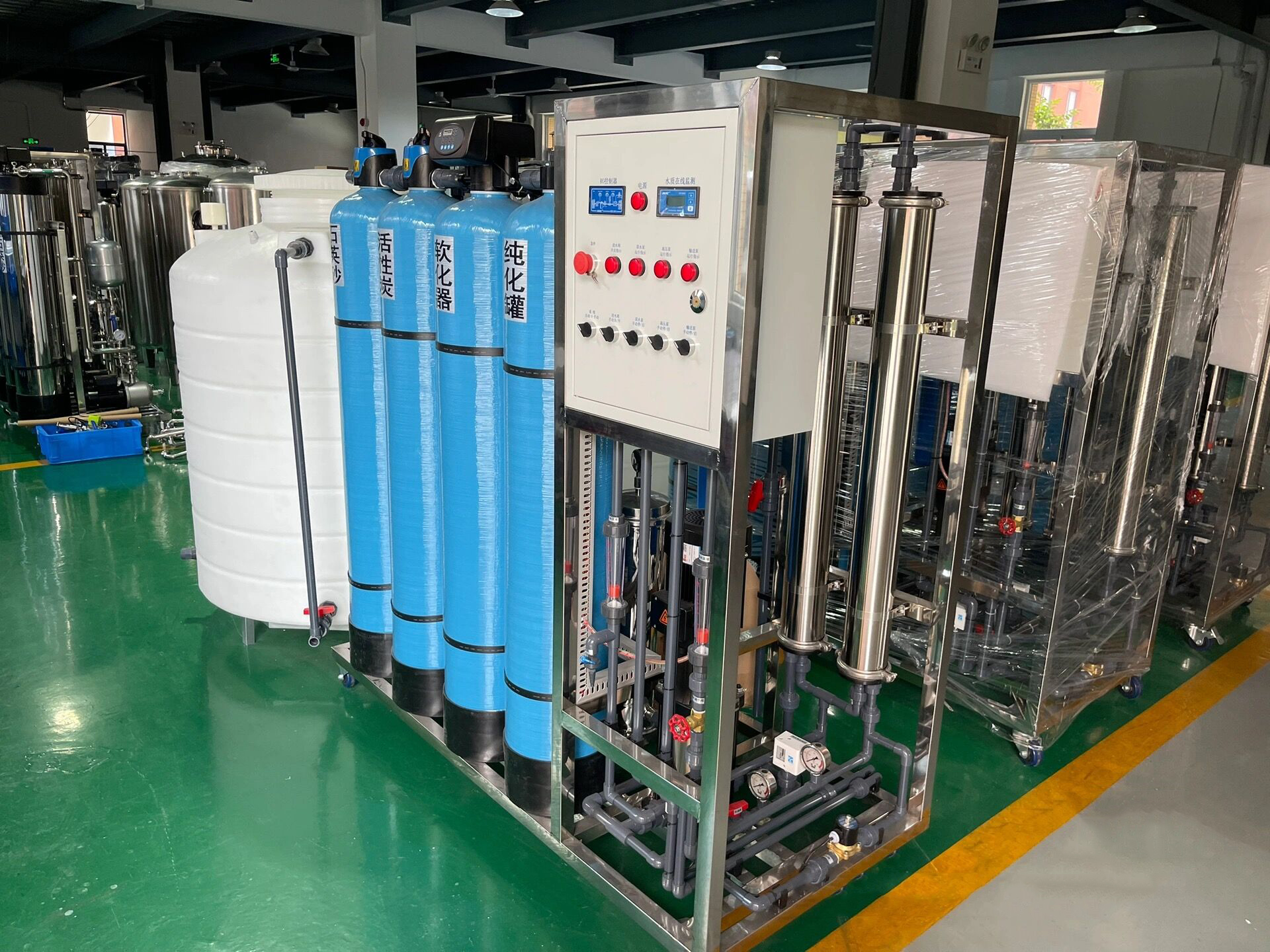 水處理設備在正常運行一段時間后,工業純水設備的反滲透膜元件會受到在給水中可能存在的懸浮物質或難溶物質的污染,主要有碳酸鈣垢、硫酸鈣垢、金屬氧化物垢、硅沉積及有機或生物沉積物。所以,設計再的水處理系統,zui終是需要進行清洗的,在RO系統表現出污染傾向、長時間停運之前及停運后的投入使用、或按計劃進行常規保養時,都需要對反滲透系統進行清洗。合理必要及時地對系統進行清洗,是保證系統穩定運行的必要條件。